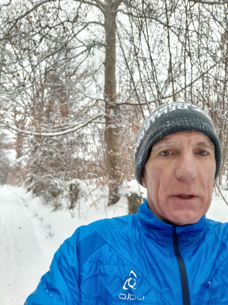 Ce matin la neige est au rendez-vous pour mon entraînement ( 3 heures ), j’ai choisi de chausser des « Salomon – Speedcross 4 » qui ont une très bonne adhérence à la neige fraîche. Je les avais déjà testées avec succès lors des 100 kilomètres dans l’Antarctique.