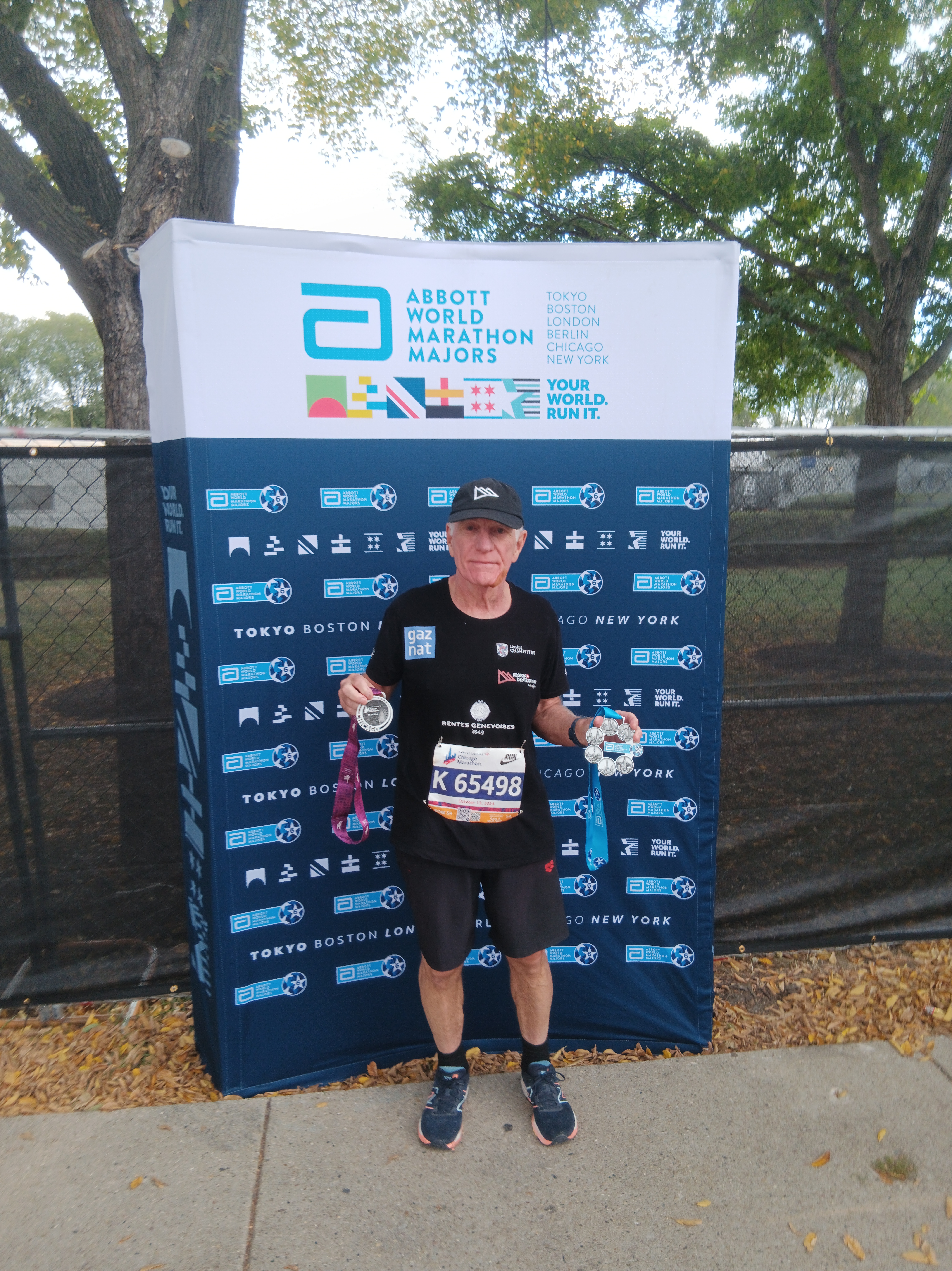 William’s goal was to finish the Chicago Marathon and join the « Abbott World Marathon Majors 6 stars club« . He succeeded, despite a scare at the 23rd kilometer: a fall behind the pacemakers could have compromised his objective. With 15 minutes’ downtime at the medical station (chin and rib injuries), he finally finished 71st out of 153 finishers in his category (H70-74).